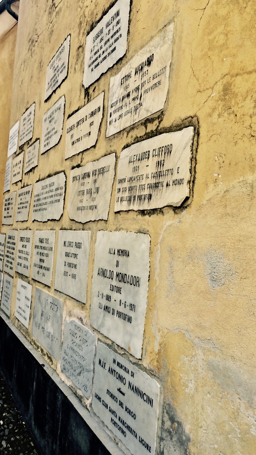 Natürlich trifft man in diesen Orten Italiens auch ständig auf wunderschöne Kirchen, wie auch hier in Portofino auf dieses von außen gelbe, zauberhafte Exemplar. Interessant fand ich, dass die meisten Kerzen hier elektrisch betrieben werden, vermutlich weil nicht jede Kirche immer betreut werden kann, bei der Menge 😉 Da kann offenes Feuer natürlich gefährlich sein. Was absolut beeindruckend war, war der Urnenfriedhof den wir hinter der Kirche entdeckten. Eine solch wundervolle Grabstätte habe ich noch nie gesehen. Unter dem blauen Himmel, ganz in weiß, sind die Urnengräber geschmückt von leuchtenden Kunst- Blumen. Ich finde, weltweit, sollten alle Ruhestätten eine solche Schönheit bergen. Ich kann mir nichts würdevolleres vorstellen, als an einem solchen Platz die letzte Ruhe für all die schönen Seelen zu erden.