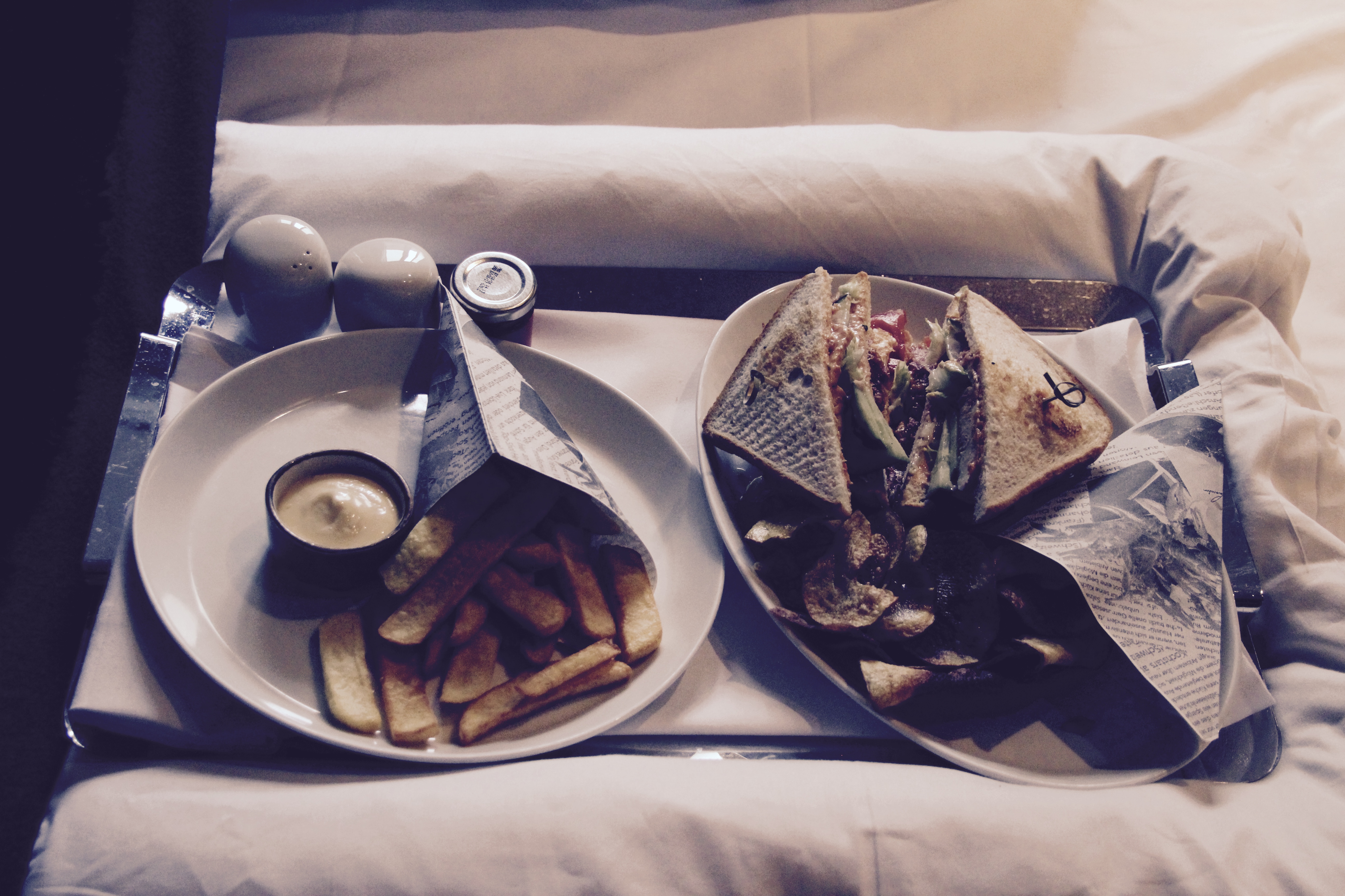 Am Nachmittag haben wir dann entschlossen auch die Programmpunkte Room Service und  In- Room Massage zu testen. Beides eine gute Wahl. Das Essen kam schnell und war ausreichend für einen Snack für zwei. Fritten mit Trüffelmayo und das Clubsandwich mit Chips. Schmeckte alles vollkommen in Ordnung und auch der Preis war ok. Fritten 9 Euro, Sandwich 21 Euro. Das war im Vergleich zu den Preisen der Drinks annehmbar für ein Haus dieser Qualität.