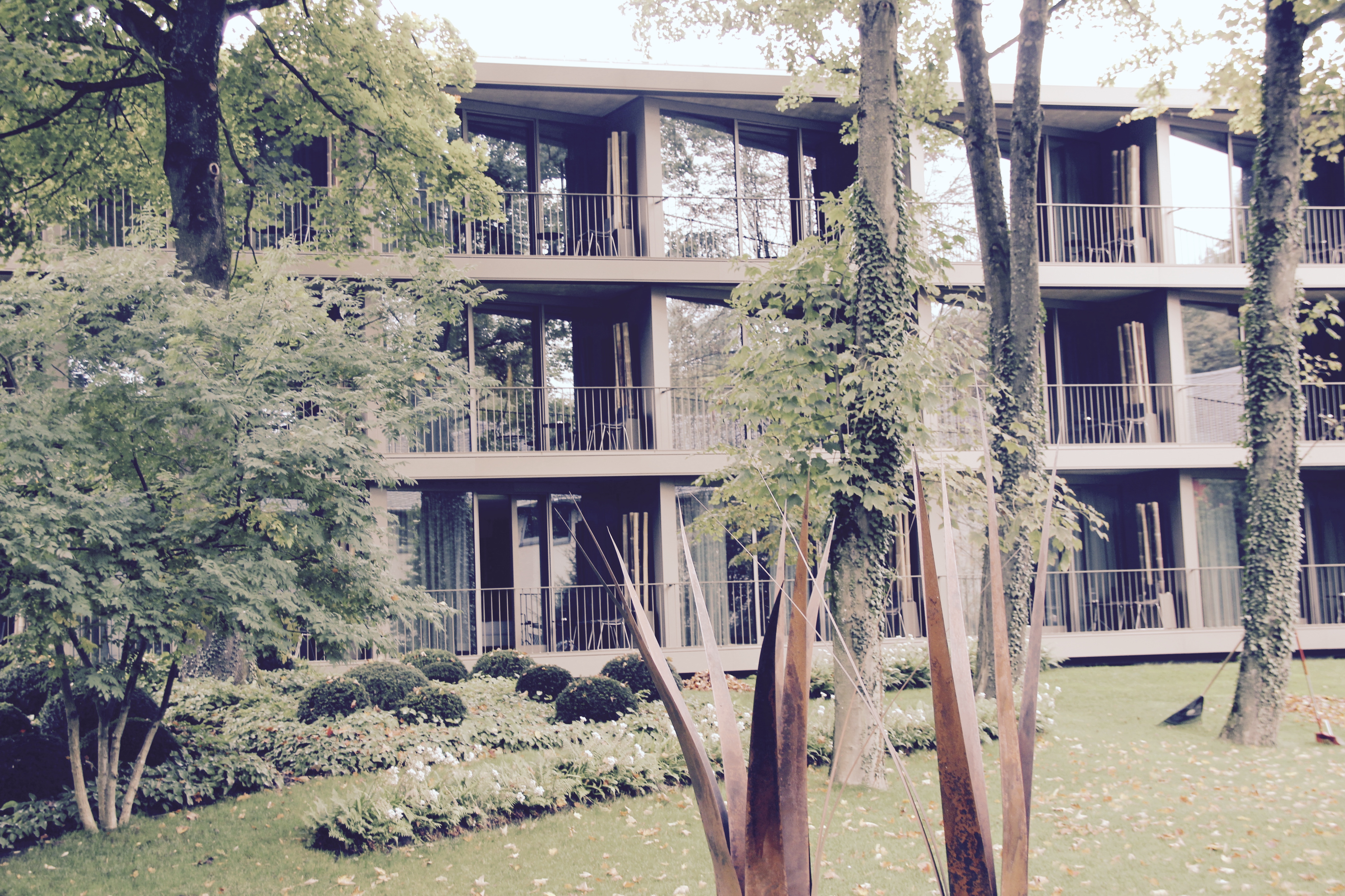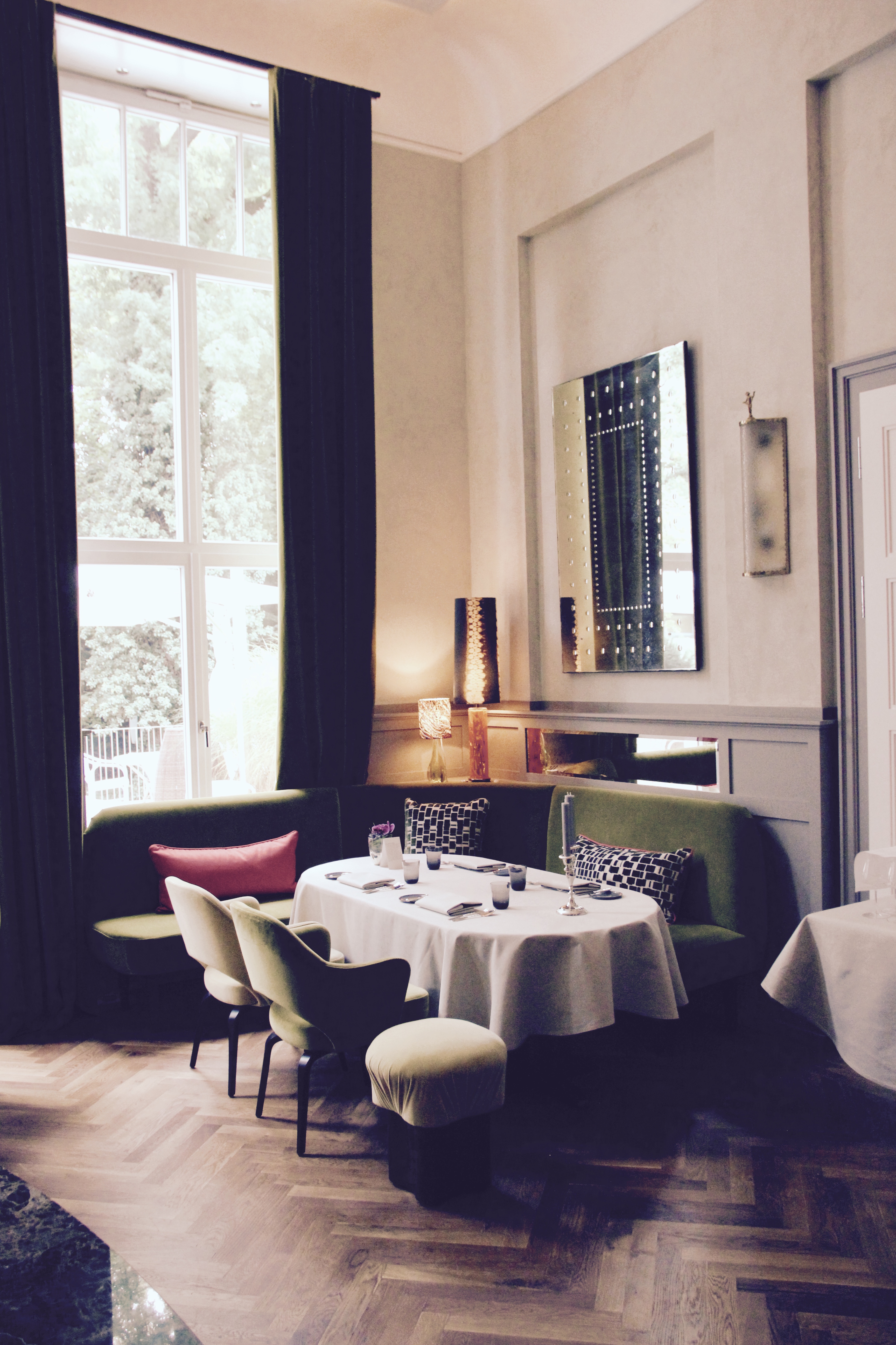 Man findet neben dem Weg zu den Zimmern, die wunderschöne Bar und die kleine Bibliothek. Von überall schaut man in den Garten, der ebenfalls mit Kunst ausgestattet ist. Das Herzstück aber, ist das wundervolle Restaurant Louis mit Zugang zur Terrasse. Hier könnte ich ewig sitzen und mich einfach nur wohlfühlen.