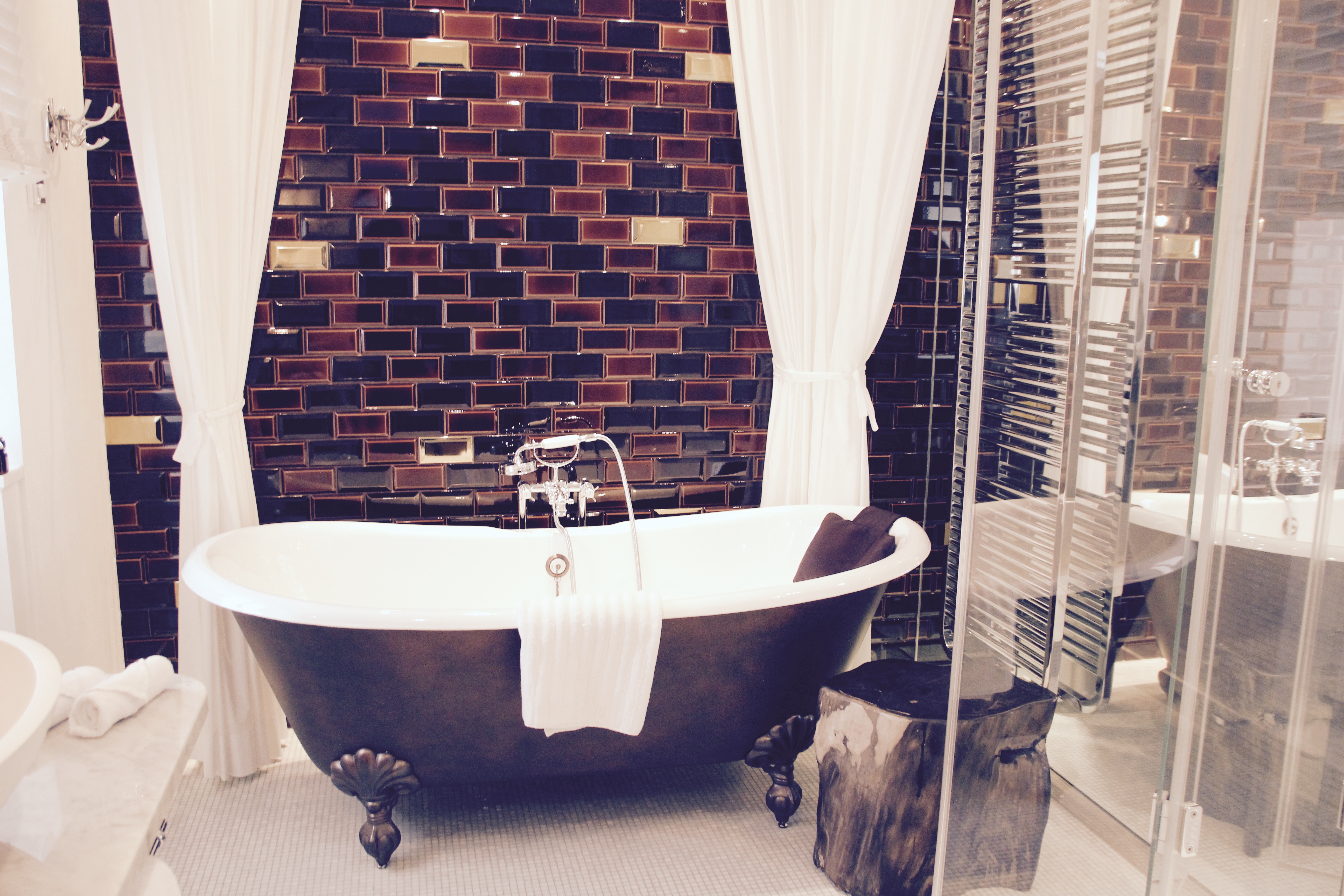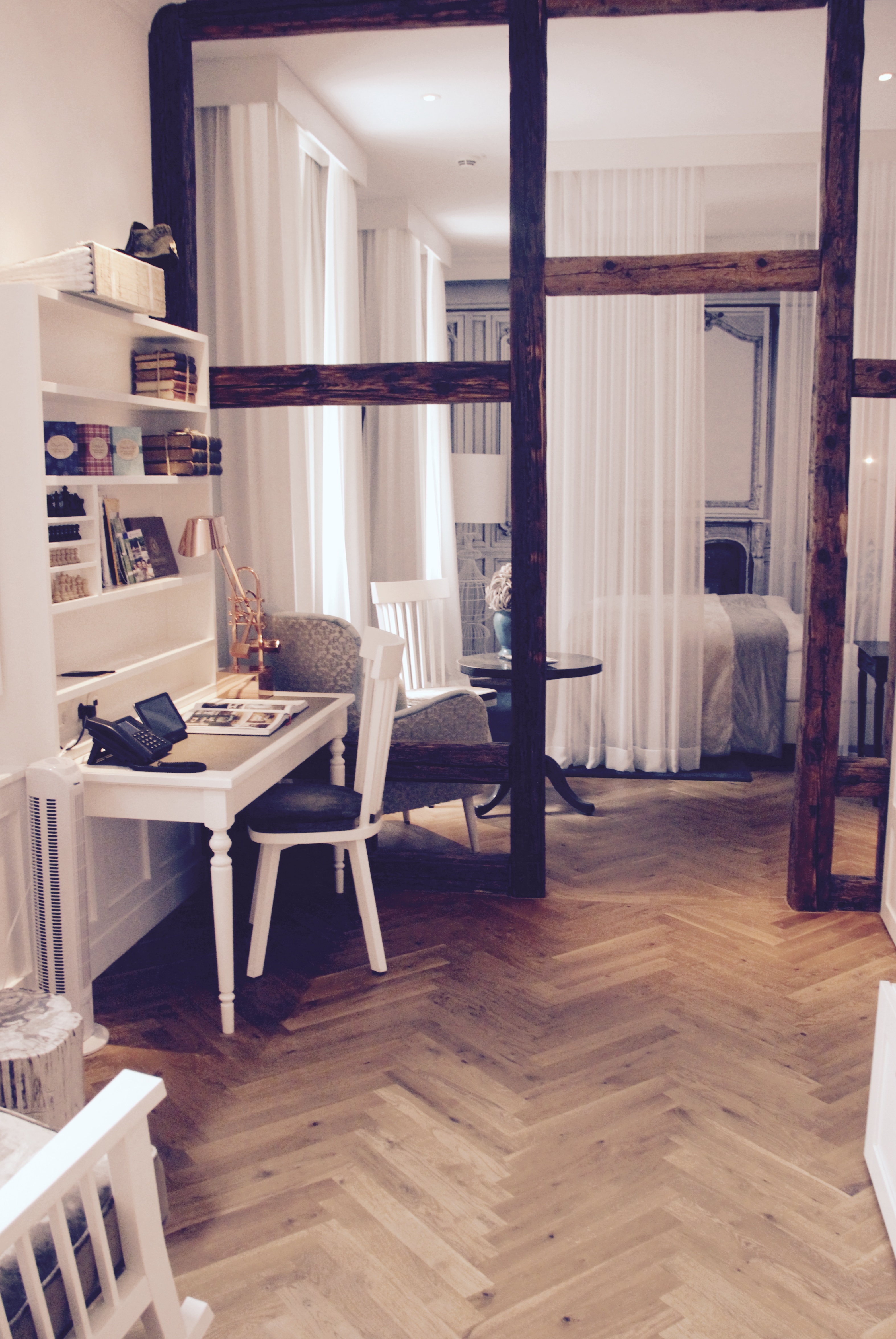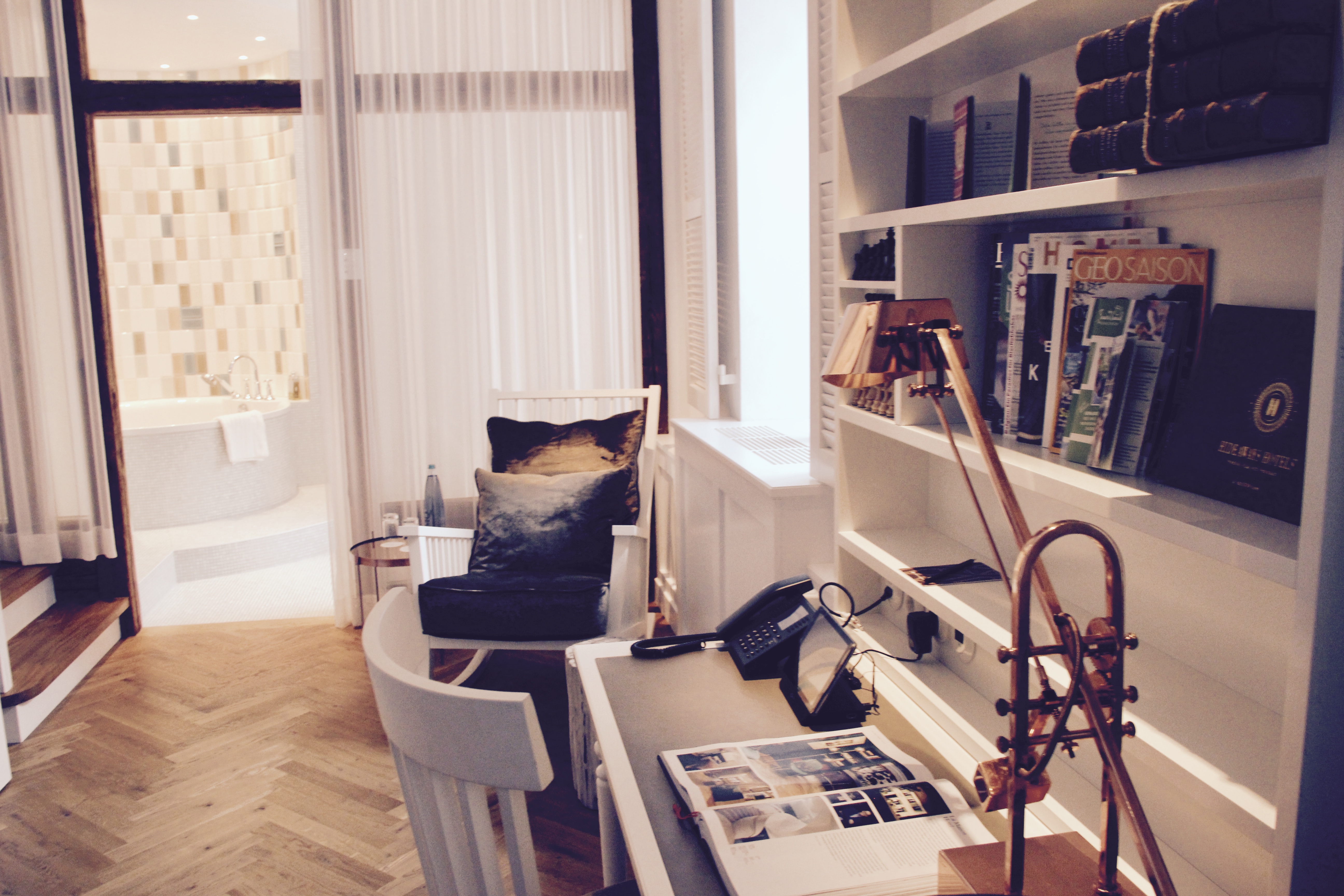 Die unteren Bilder habe ich in den Suiten aufgenommen, die schöne weiße ist die La Maison Suite, das rötliche Interieur gehört in die Ratatouille Suite und die wunderschöne alte Badewanne vor den braunen Fliesen gibt es in der Chocolat Suite. All diese Räume stehen ganz allein für sich und sind absolut hinreißend. Es gibt sie nur einmal und das Interieur ist einfach nur großartig.