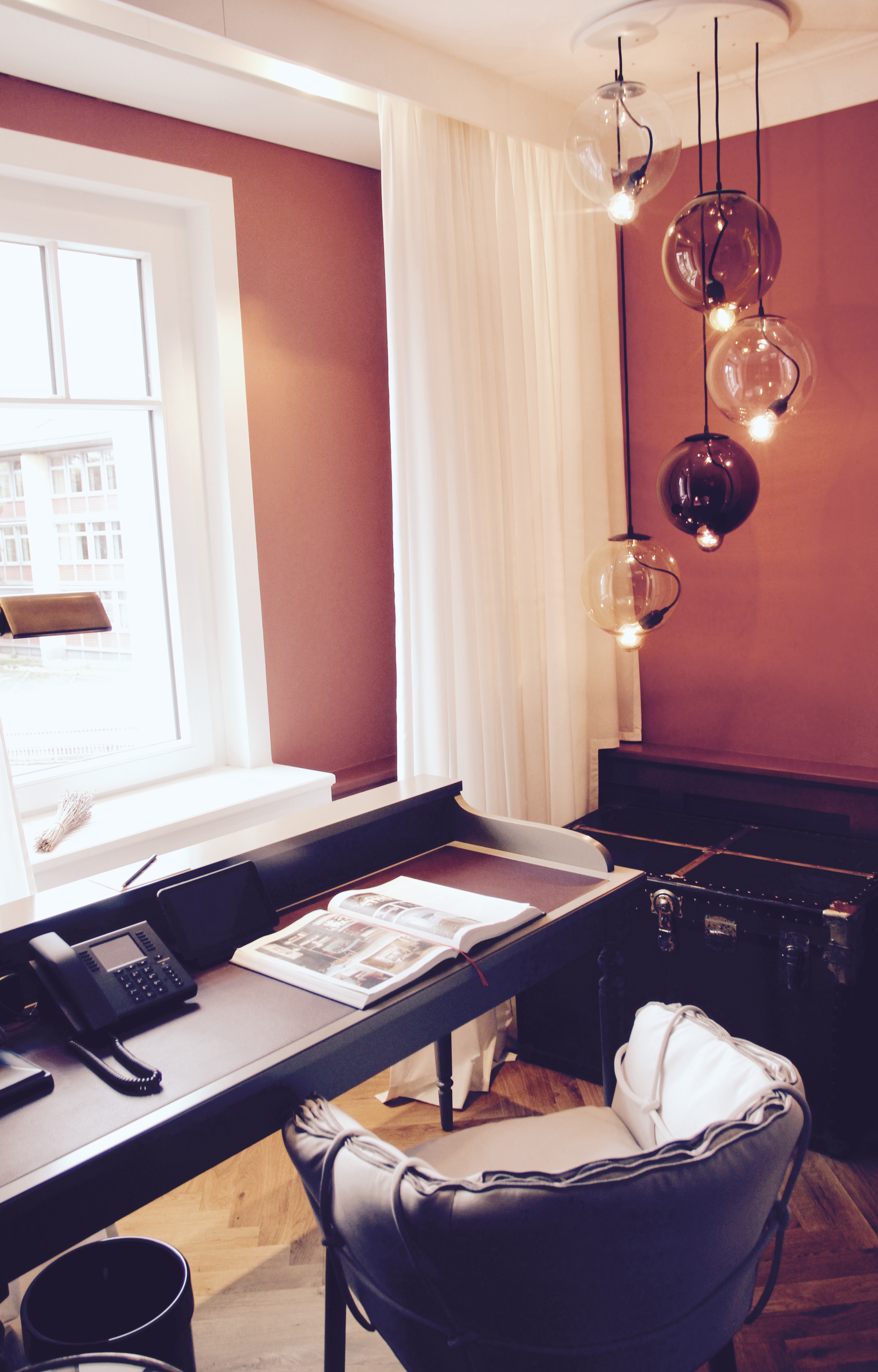 Kennt jemand von Euch Conni Kotte? Sie ist eine absolute Ikone im Interieur Design. Sie reist um die ganze Welt und findet ganz besondere Einzelstücke, teils sehr alt, teils sehr exotisch, aber alles zusammen gewürfelt, eine solche Harmonie, dass man gar nicht mehr den Raum verlassen mag. Dieses Gefühl ereilte mich bereits in der kleinen Lobby. Sie ist nämlich für sehr viele Räume im Hotel verantwortlich. Aber dazu später mehr.
