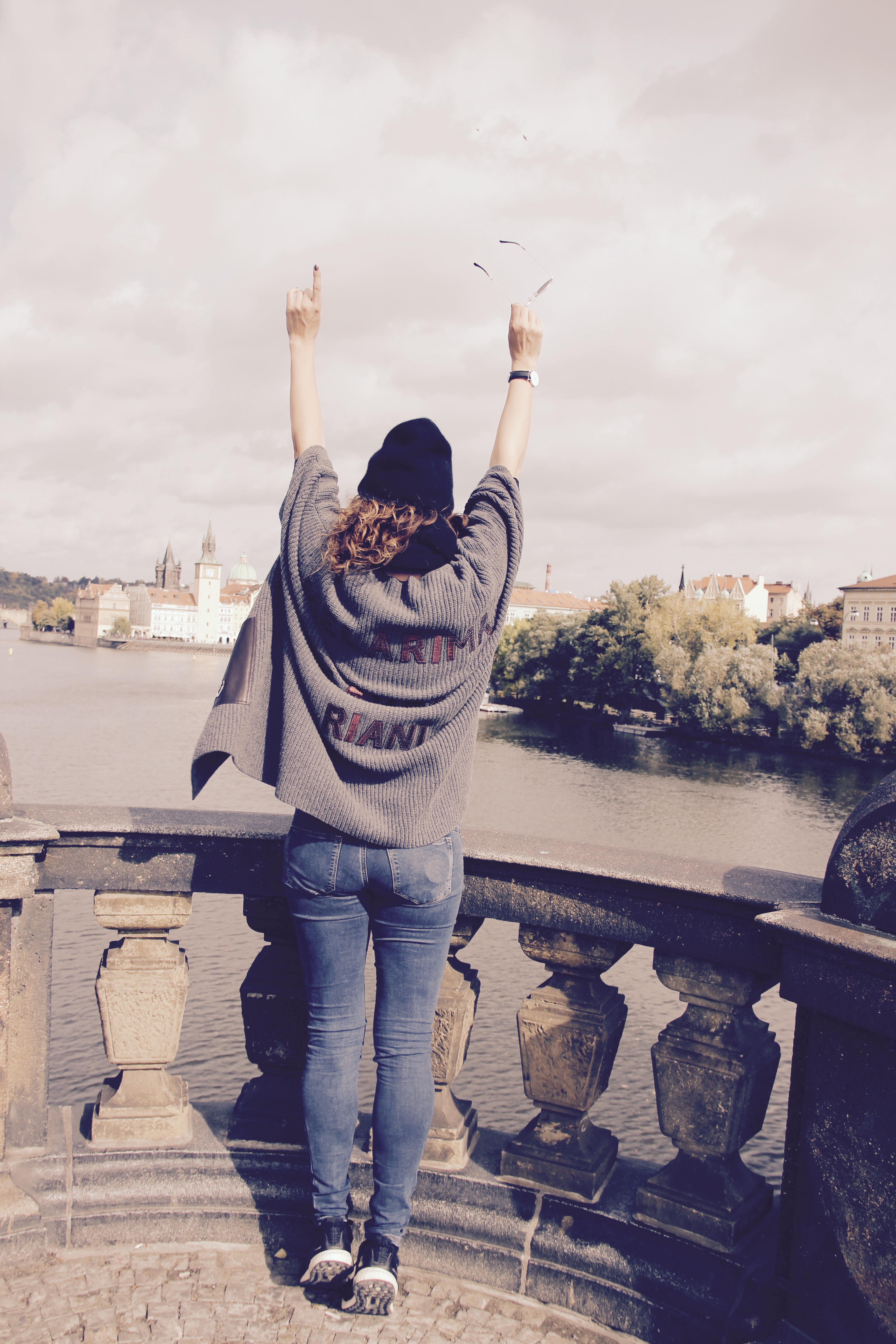 Ich war vermutlich 17 als ich das erste Mal mit der Schule in Prag war. Damals konnte ich die Schönheit dieser Stadt noch gar nicht so wirklich wahrnehmen, es war viel zu aufregend mit den Klassenkameraden unterwegs zu sein und weg von Zuhause etwas zu erleben. Sightseeing- nein Danke 🙂 Das einzige Erinnerungsstück, dass ich mir damals mitbrachte, war ein handgemaltes Porträt, dass ich auf der Karlsbrücke anfertigen ließ. Meine Ma hat es heute noch. Ich muss sagen, es war das technisch beste gemalte Bild von mir, dass jemals jemand angefertigt hat. Auf den meisten, erkennt man sich eher nicht. Ich wusste also noch, dass es begabte Maler in Prag gibt, und dass es eine sehr schöne Brücke gab, mit viel viel goldenen Elementen. Das die Moldau auch musikalisch ein Meisterwerk ist und dass ich es vor langer Zeit im Musikunterricht auf dem Keyboard lernen musste.